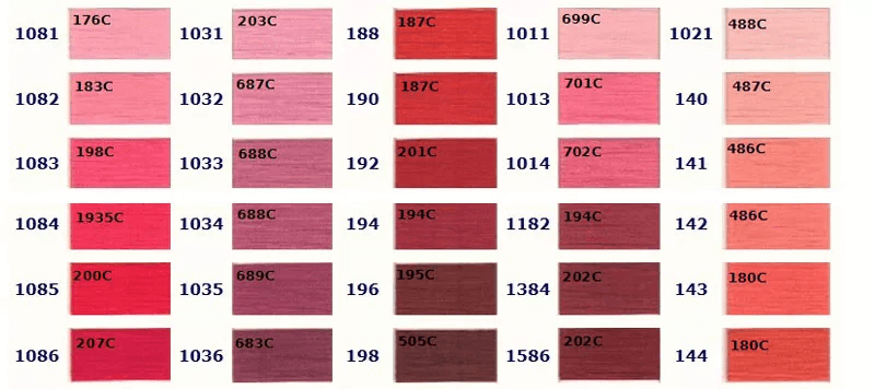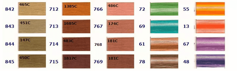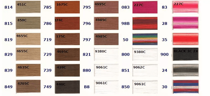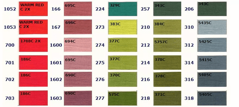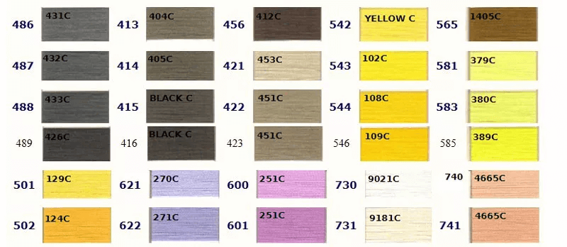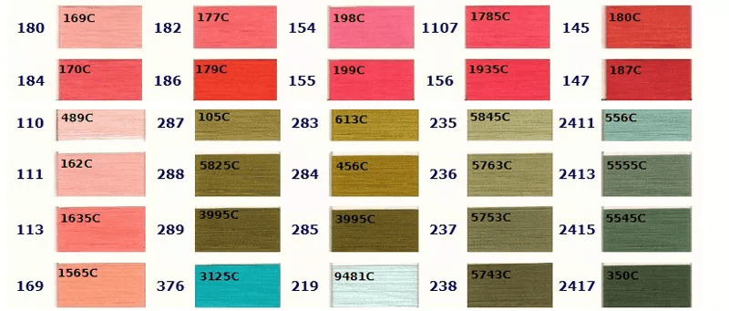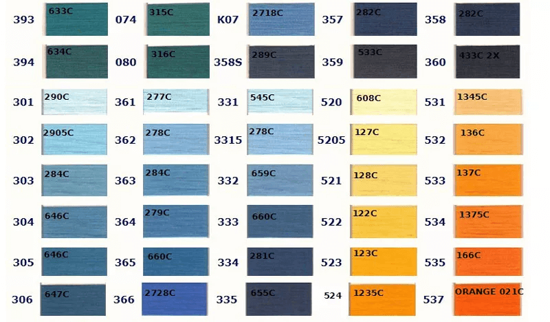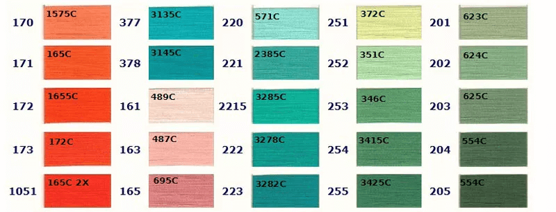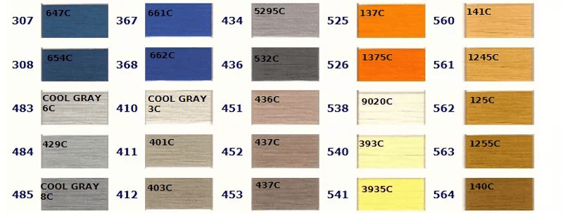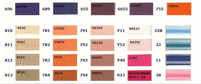 お好きな色をお選びいただき、ご注文時に色番号をお知らせください。 色の左側に記載されている番号が当社の色番号です。色の上に記載されている番号は対応するPantoneカラーですが、完全に一致するわけではありませんので参考用としてご覧ください。ご注文の際は当社の色番号をご確認の上、お知らせください。